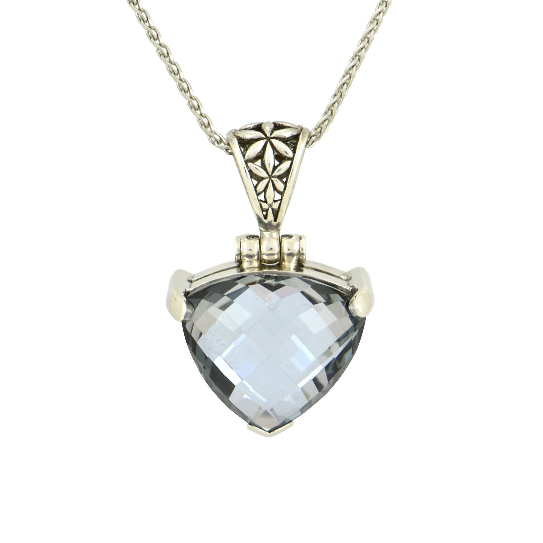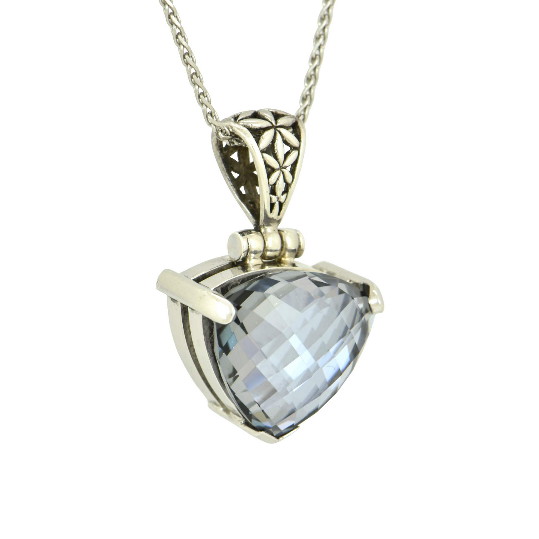 Medium Trillion shape Moonlight Mystic Quartz set in Sterling Silver plated in White Rhodium